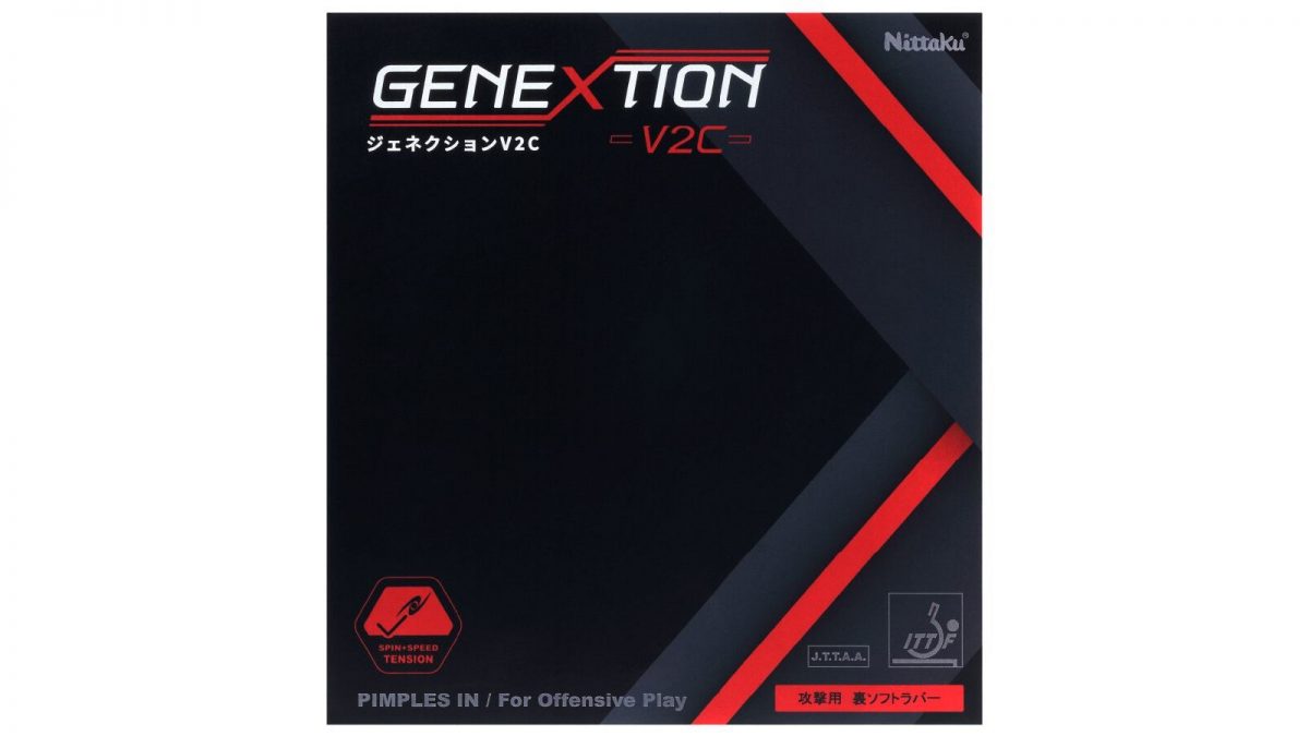 『ジェネクション V2C』は、卓球用品の総合メーカー、「Nittaku(ニッタク)」が販売するドイツ製の微粘着テンション系の裏ソフトラバーです。