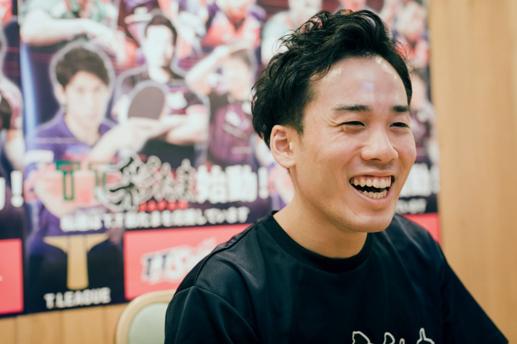 だが、本人からは意外な言葉が。「結構僕は思い悩んだ時期もあって。中学校とかの実績はいいっすけど、そこからはあんまり勝てなくて、自信が砕かれたんです」。実業団の名門・協和発酵キリンでは「何か変わらなければ」と悩んでいた。そんなときにT.T彩たま・坂本竜介監督からの1本の電話が。Tリーグは実業団との二重登録が認められている。Tリーグに参加しない理由はなかった。