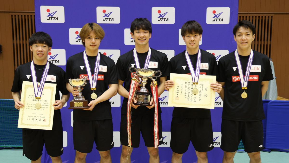 2025年6月26日~29日にかけて島津アリーナ京都(京都府)にて第75回全日本実業団卓球選手権大会が行われ、男子団体では協和キリンが8年ぶり14回目の優勝を果たした。