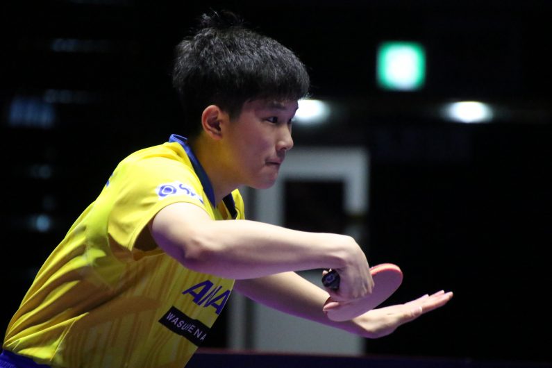 第1ゲームを落とし迎えた第2ゲーム。8-10から追いついたものの、王楚欽の強烈なフォアドライブを止めることができず、このゲームも落としてしまう。第3ゲームも王楚欽に厳しく両サイドにコースを突かれ、なかなか先手を取れず、ゲームカウントは0-3に。