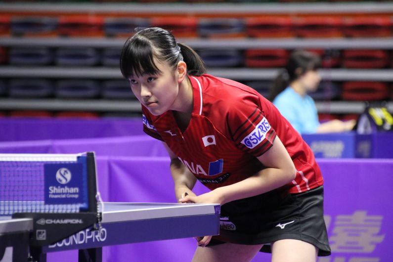 横井咲桜(ミキハウスJSC)、張本美和(木下グループ)、赤江夏星(貝塚第二中)のカデット女子は、初戦のチャイニーズタイペイ戦を3-1で制し、準決勝では中国と対戦。1番の横井がストレートでの完勝をおさめ、幸先の良いスタートを切る。しかし、その後の2番、ダブルス、4番を落とし、1-3で敗退となった。