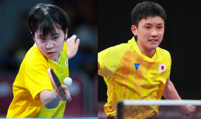 *写真は平野美宇(日本生命・左)、張本智和(JOCエリートアカデミー)