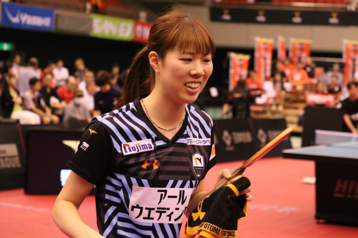 TOP名古屋がダブルスを制し、2番で森田彩音(TOP名古屋)が早田ひな(日本生命)を破る金星を挙げる。