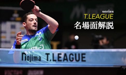 Tリーグの見逃せない名勝負をラリーズ編集部独自の視点で解説する【T.LEAGUE 名場面解説】。今回は11月23日のノジマTリーグ・木下マイスター東京VS琉球アスティーダの一戦から、第4マッチのマルコス・フレイタス(以下、フレイタス)と陳建安の試合にスポットライトを当てる。