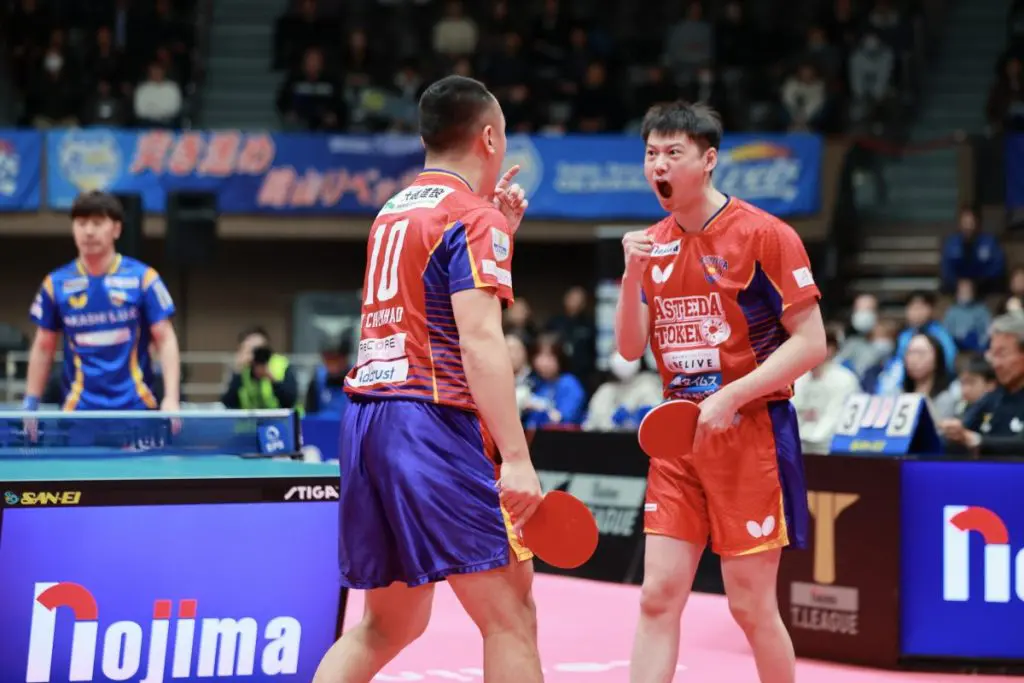 このカードは8月の試合でも対戦しており、そのときは丹羽/ヤンアンペアが勝利していたが、この試合ではジョシンコウ/シュウユウペアが巧みなコース取りとパワフルなフォアハンドドライブで主導権を握り、第1ゲームを先取する。第2ゲームで立て直したい丹羽/ヤンアンペアだったが、ジョシンコウ/シュウユウペアの勢いは止まらず、ゲームカウント2-0で第2ゲームもジョシンコウ/シュウユウペアが勝利し、琉球が第1マッチを制した。