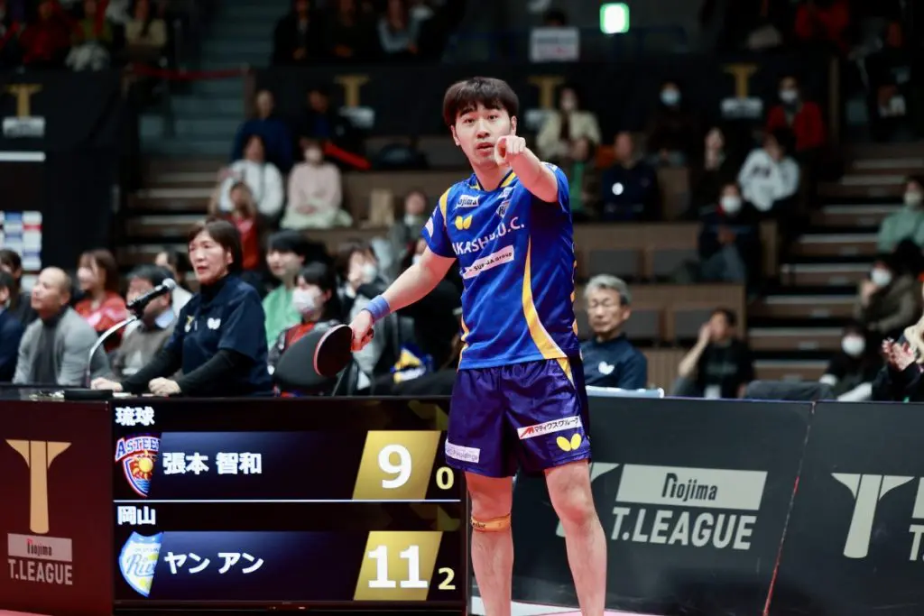 貴重な勝利を挙げて勢いに乗った岡山は、第3マッチにヤンアンを起用。琉球はエースの張本智和を投入するも、ヤンアンが序盤から前陣でのドライブ連打で張本から先手を取り、早々に2ゲームを先取する。第3ゲームは張本も粘って9-9とするも、最後まで攻撃の手を緩めなかったヤンアンが決めきり、ゲームカウント3-0で勝利。岡山がマッチカウント2-1で、ファイナル進出に王手をかけた。