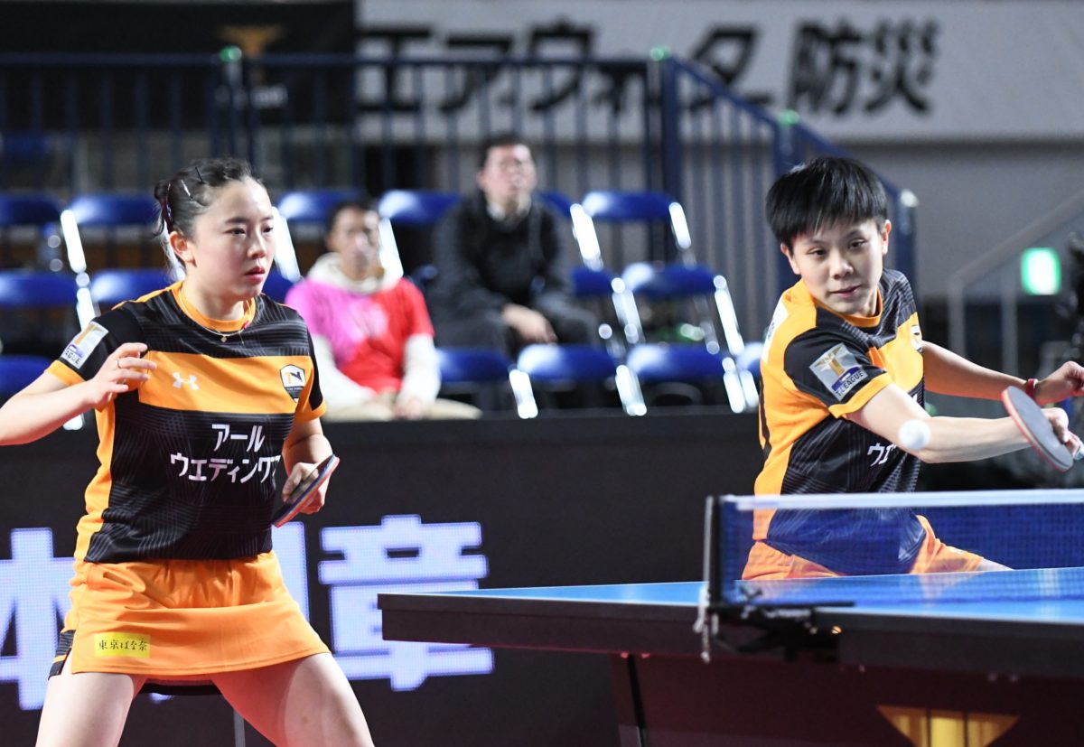 *写真:チョンジヒ(トップおとめピンポンズ名古屋・左)と鄭怡静(右)/©T.LEAGUE